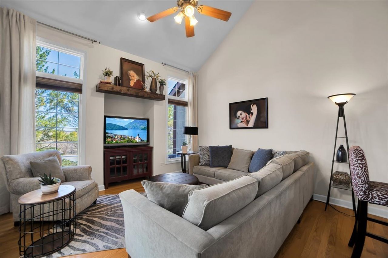 Stop by this Saturday April 25th 1pm to 4pm. All are welcome to come see this gorgeous home for yourself. No Appointment Necessary. Nestled on a peaceful cul-de-sac in the highly sought-after Grande Park community of Plainfield, this stunning English Cottage-style townhome blends timeless charm with modern luxury. Boasting 3 bedrooms, 2 full baths, and 2 half baths, this beautifully maintained residence welcomes you with a private side entrance and a thoughtfully designed, light-filled layout. The main level impresses with gleaming hardwood floors, elegant crown molding, and a dramatic two-story Great Room featuring soaring vaulted ceilings and access to a brand-new deck-perfect for summer entertaining. The gourmet kitchen is a true showpiece, showcasing granite countertops, stainless steel appliances, 42 Brakur custom cabinetry, a pantry, and an inviting breakfast bar. The spacious master suite offers a serene retreat with vaulted ceilings, a luxurious bath featuring a glass-enclosed shower, deep soaking tub, double vanity, and a large walk-in closet. Upstairs, you'll find a generous second bedroom, a loft overlooking the Great Room, and a convenient laundry area. The fully finished walkout lower level is a true standout, featuring a versatile living space with natural light and a third bedroom currently used as an art studio, complete with an additional bath and patio access. Attached 2 Car Garage with Vaulted ceilings, Epoxied floors. With recent updates including a newer furnace (2022), hot water heater (2023), ejection pump (2024), stainless steel appliances (2025), and a new deck (2025), this home is move-in ready. Residents of Grande Park enjoy exceptional amenities-clubhouse, pools, tennis courts, walking trails, fishing ponds, and award-winning Plainfield District 202 schools. Elegant, comfortable, and packed with character, this is the home you've been waiting for in Grande Park. Welcome home to luxury living at its finest!